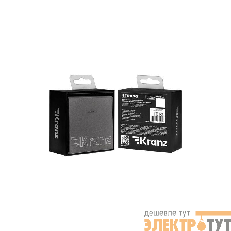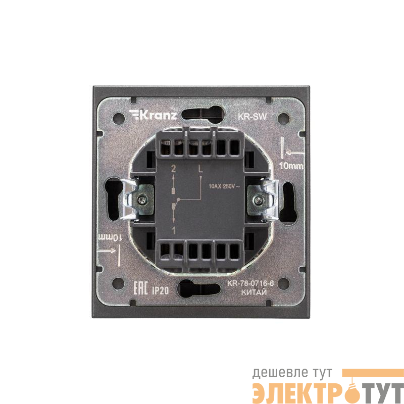 KR-78-0716-6 | Выключатель проходной (переключатель) 1-кл. СП STRONG MIELE 10А с подсветкой графит Kranz