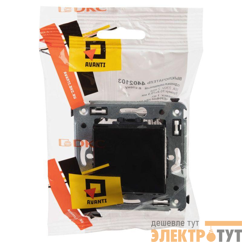 4402103 | Выключатель 1-кл. 2мод. СП Avanti "Черный квадрат" 16А IP20 черн. DKC