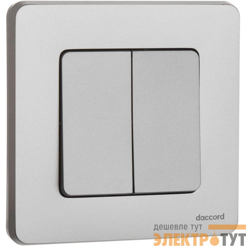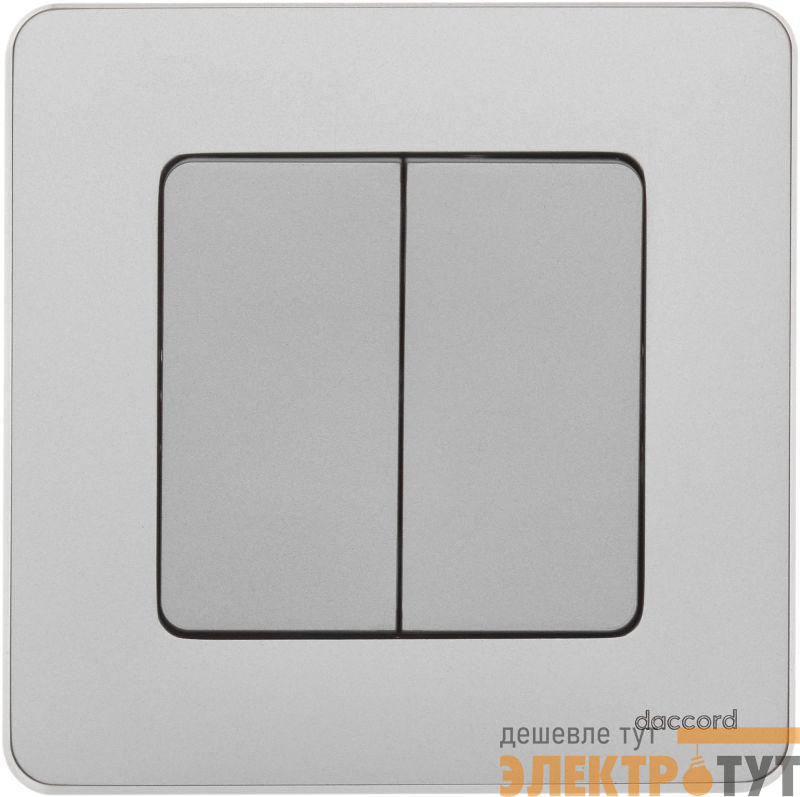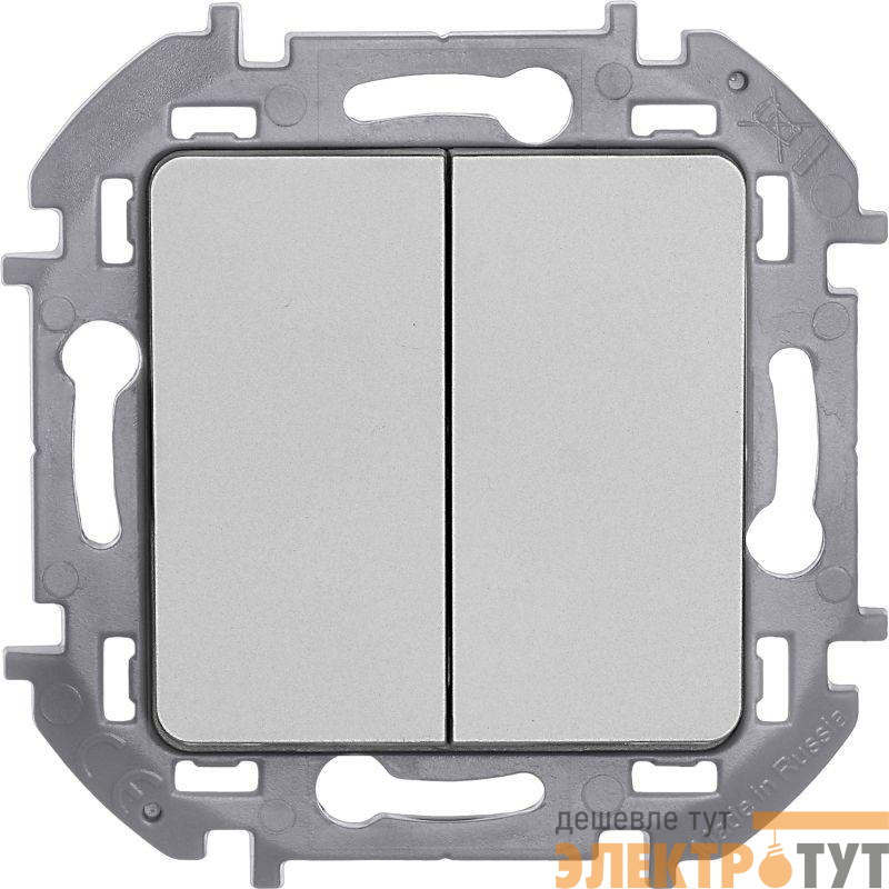 Выключатель двухклавишный скрытого монтажа Inspiria, цвет "Алюминий", номинальный ток 10АХ, напряжение ~250В, безвинтовые зажимы. Устанавливается в жилых и общественных помещениях для управления приборами освещения, вентиляции и т.д. Предназначен для управления двумя электрическими цепями.