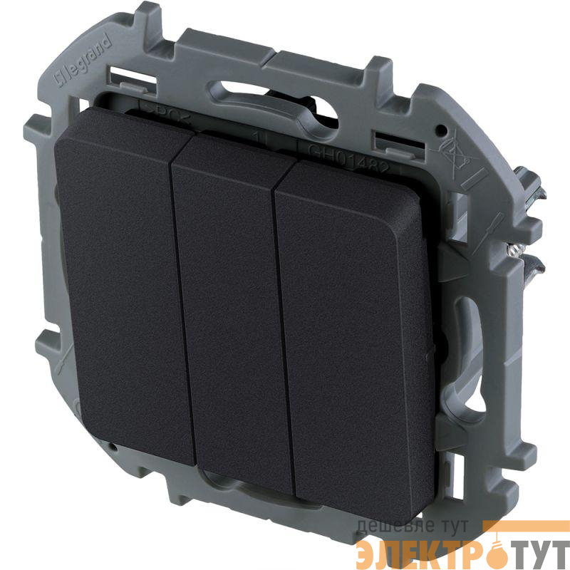 Выключатель трехклавишный Legrand Inspiria для скрытого монтажа, цвет "Антрацит", увеличенный номинальный ток 20 А, напряжение ~250В.