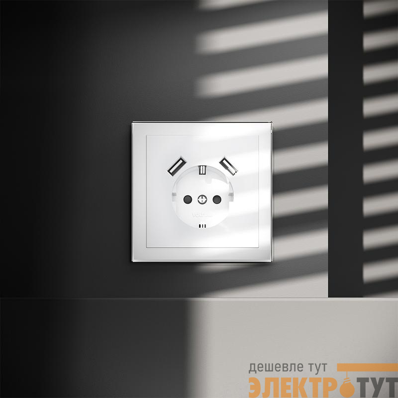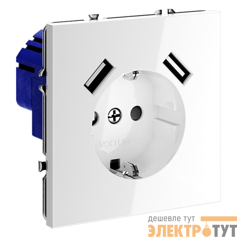 VLS040401 | Розетка 1-м СП S70 16А с USB A+A с заземл. защ. шторки механизм бел. глянцевый Voltum
