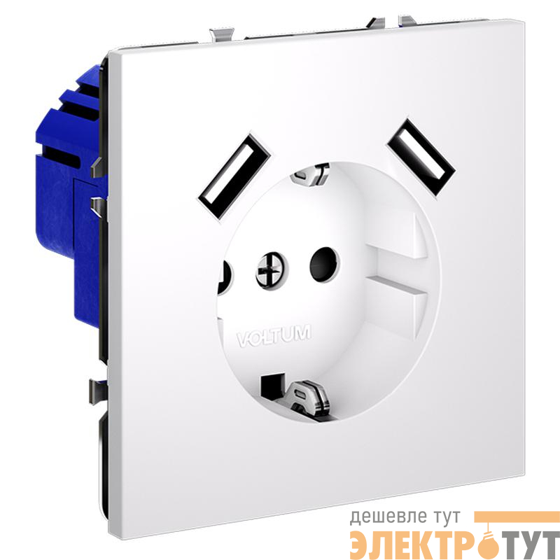 VLS040402 | Розетка 1-м СП S70 16А с USB A+A с заземл. защ. шторки механизм бел. матов. Voltum