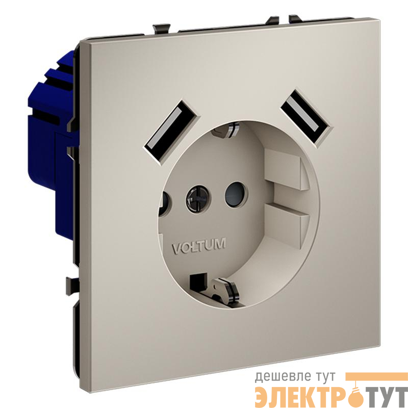 VLS040403 | Розетка 1-м СП S70 16А с USB A+A с заземл. защ. шторки механизм кашемир Voltum