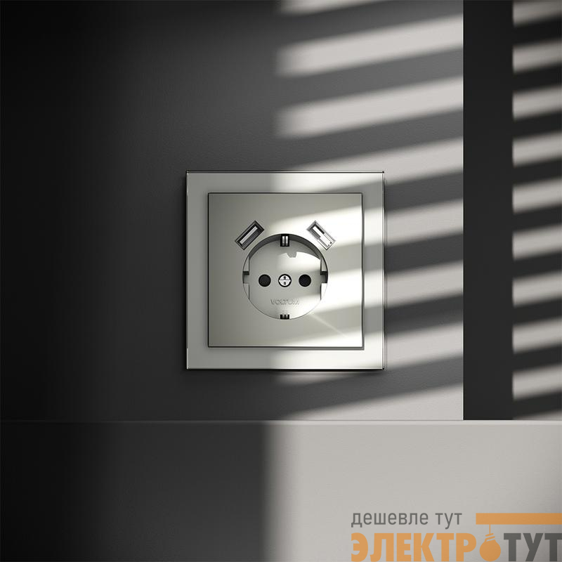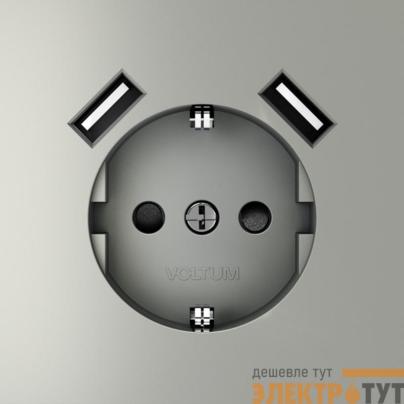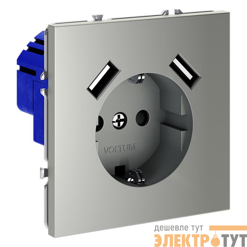 VLS040405 | Розетка 1-м СП S70 16А с USB A+A с заземл. защ. шторки механизм сталь Voltum