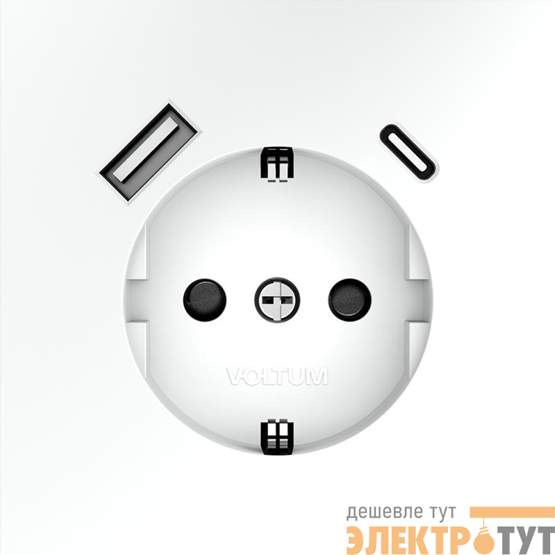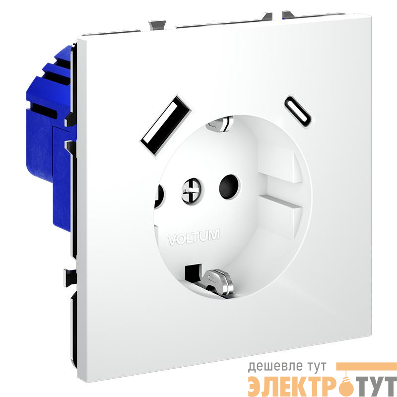 VLS040502 | Розетка 1-м СП S70 16А с USB A+С с заземл. защ. шторки механизм бел. матов. Voltum