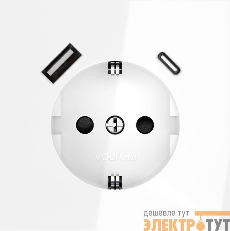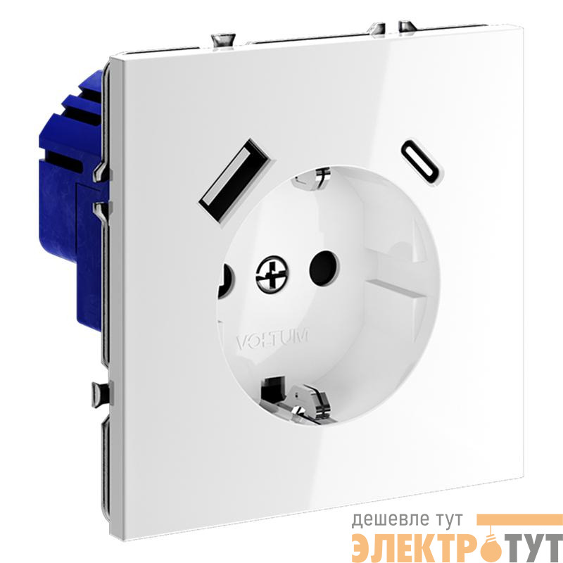 VLS040501 | Розетка 1-м СП S70 16А с USB тип A+С механизм с заземл. защ. шторки бел. глянцевый Voltum