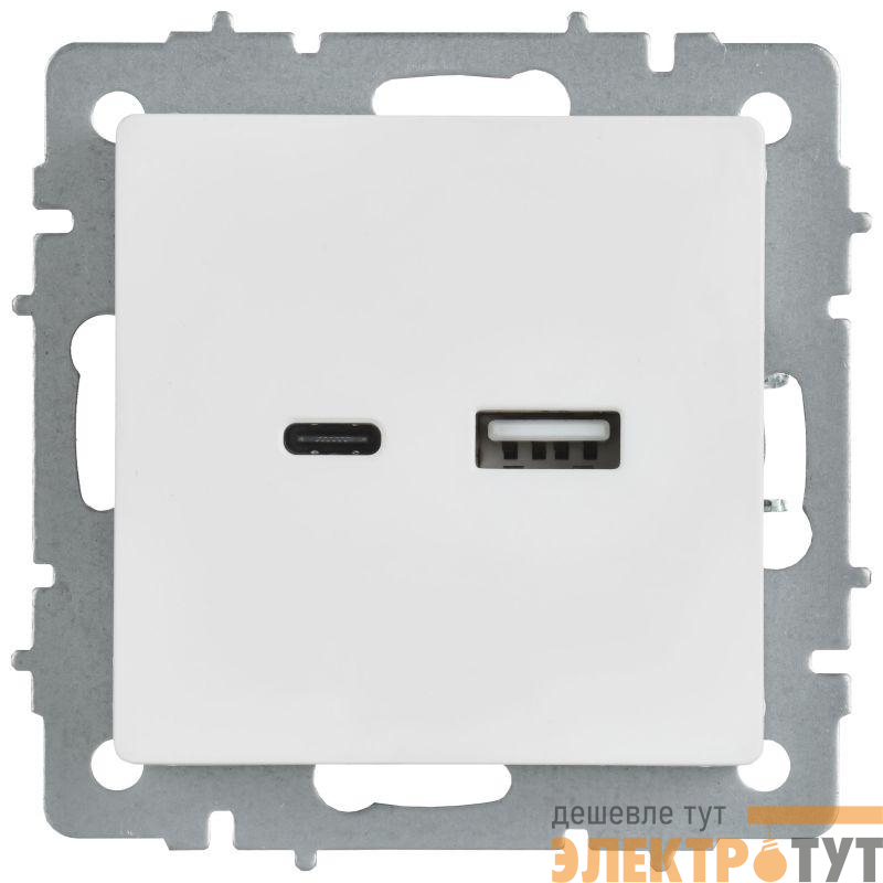 BR-U22-018-K91 | Розетка BRITE РЮ11-1-БрАБ 18Вт USB A+C механизм арктич. бел. IEK