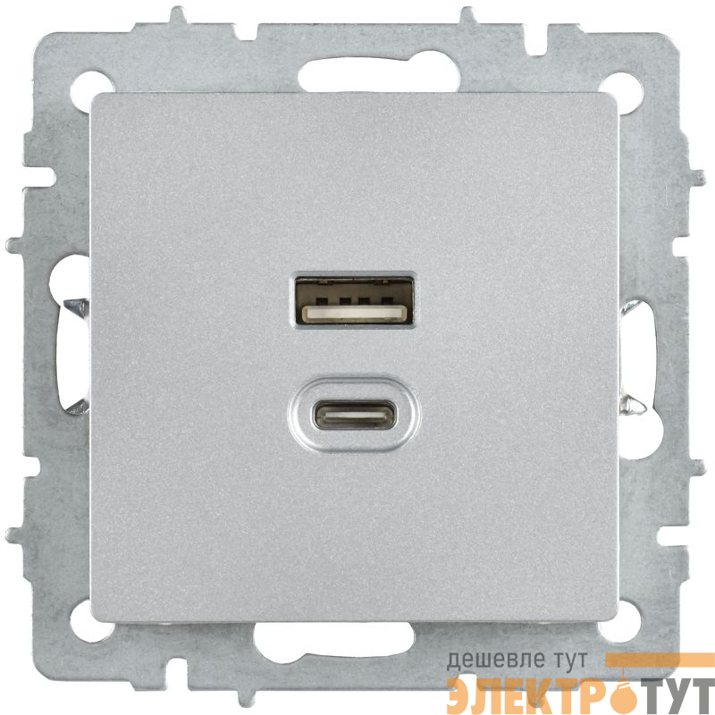 BR-U22-045-K47 | Розетка СП BRITE USB A+C 45Вт высокоск. заряд. РЮ11-2-БрА алюм. IEK