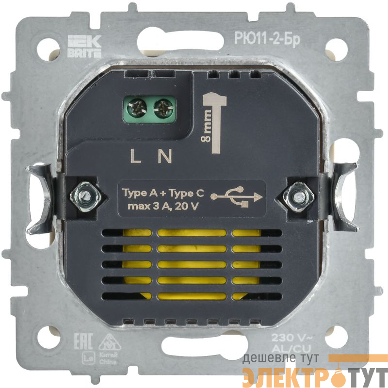 BR-U22-045-K91 | Розетка СП BRITE РЮ11-2-БрАБ USB A+C 45Вт высокоскор. заряд. арктич. бел. IEK