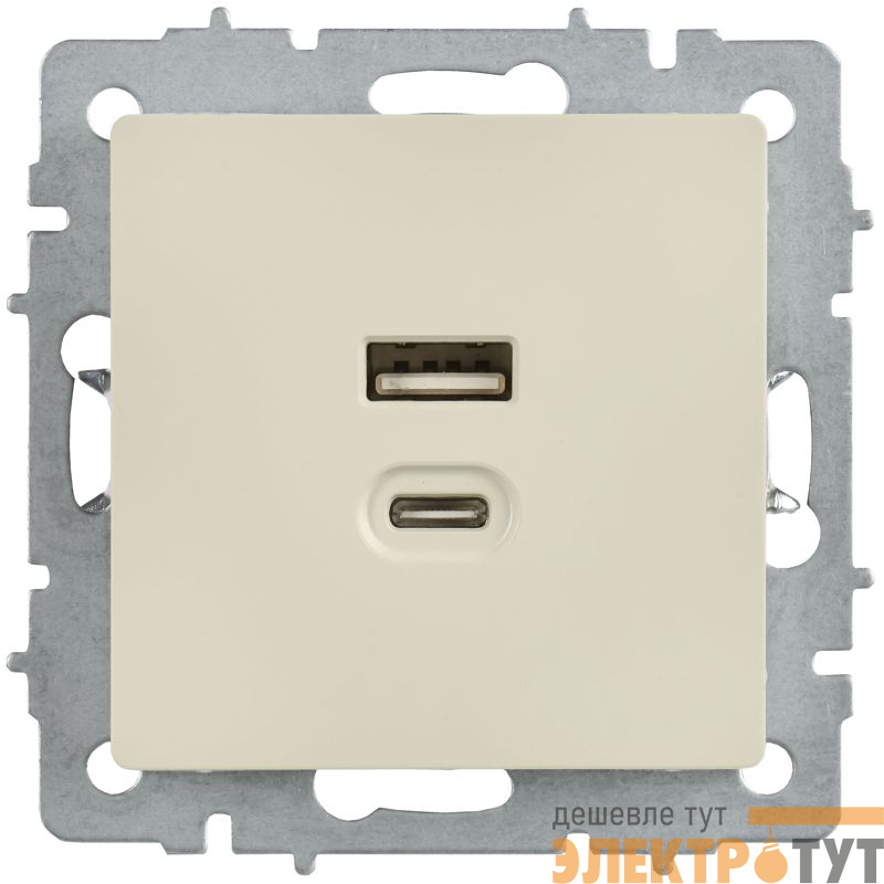 BR-U22-045-K10 | Розетка СП BRITE USB A+C 45Вт высокоск. заряд. РЮ11-2-БрКр беж. IEK
