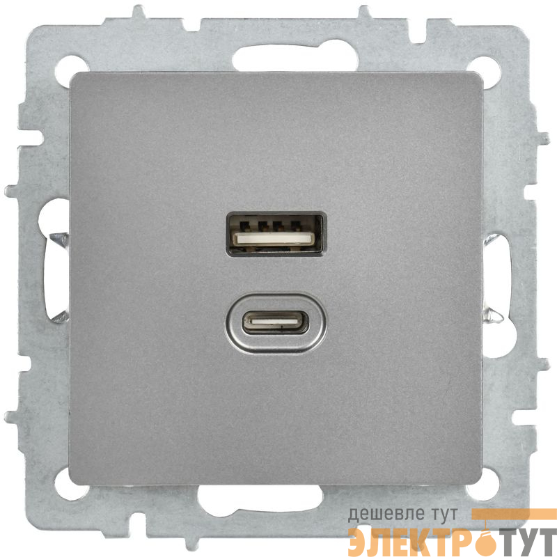 BR-U22-045-K46 | Розетка СП BRITE USB A+C 45Вт высокоск. заряд. РЮ11-2-БрС сталь IEK
