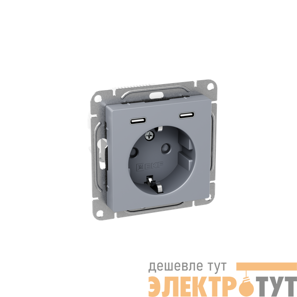 UP1-SOA-111-2USBC | Розетка СП Эпика 16А с 2 USB-C с заземл. защ. шторки механизм алюм. EKF
