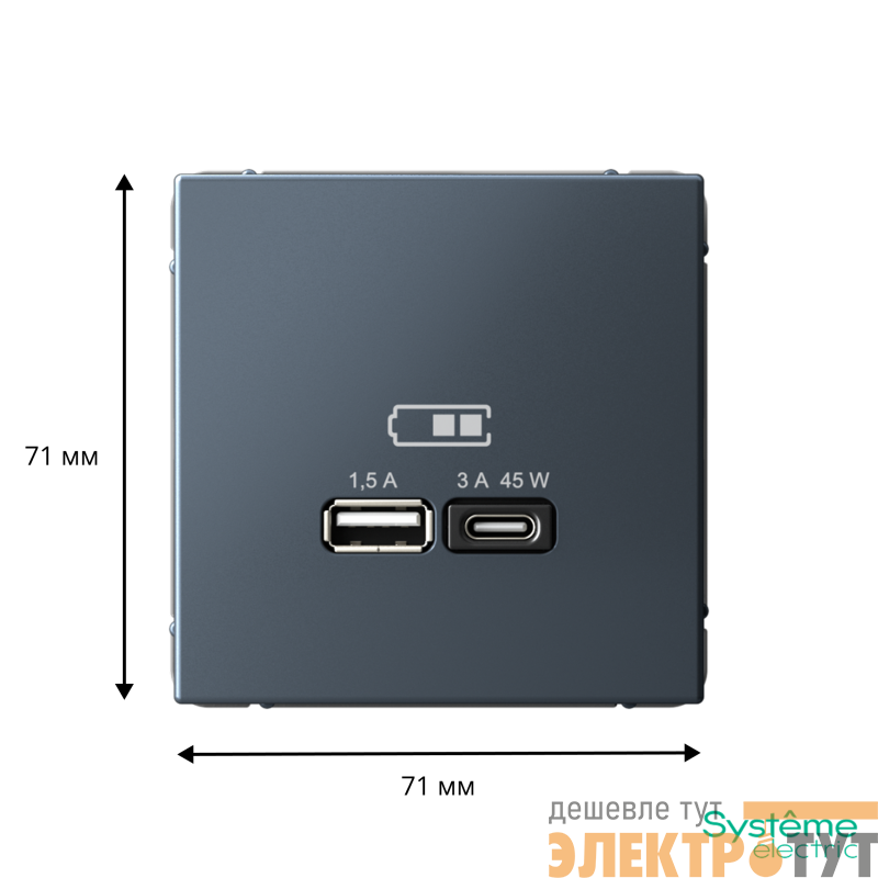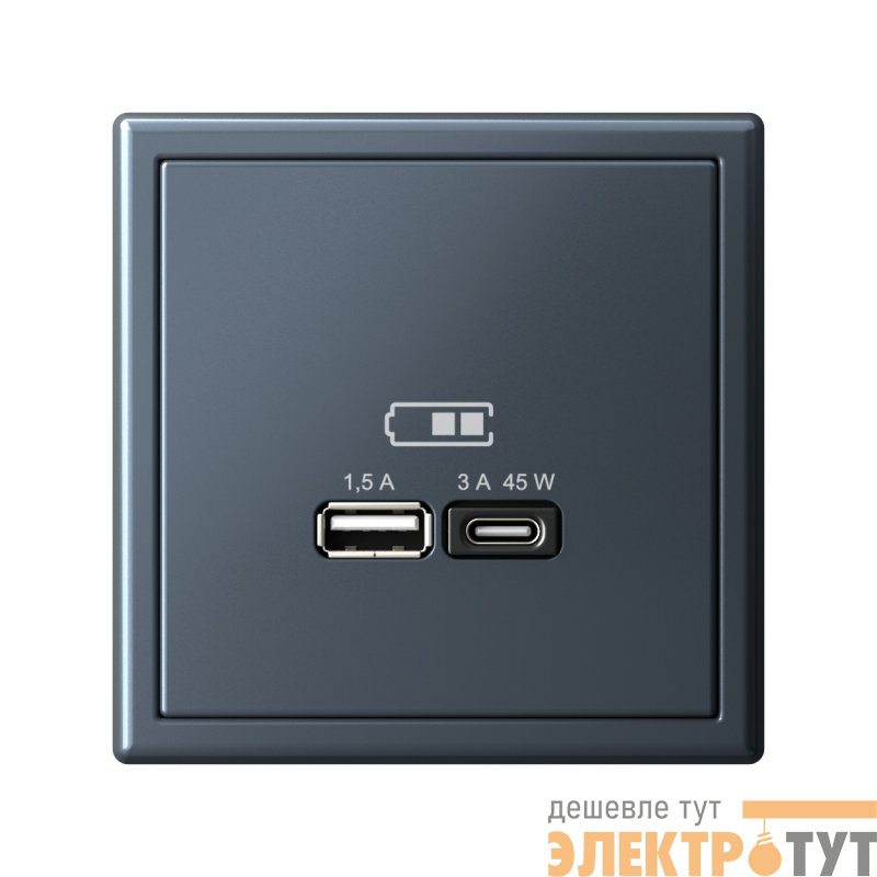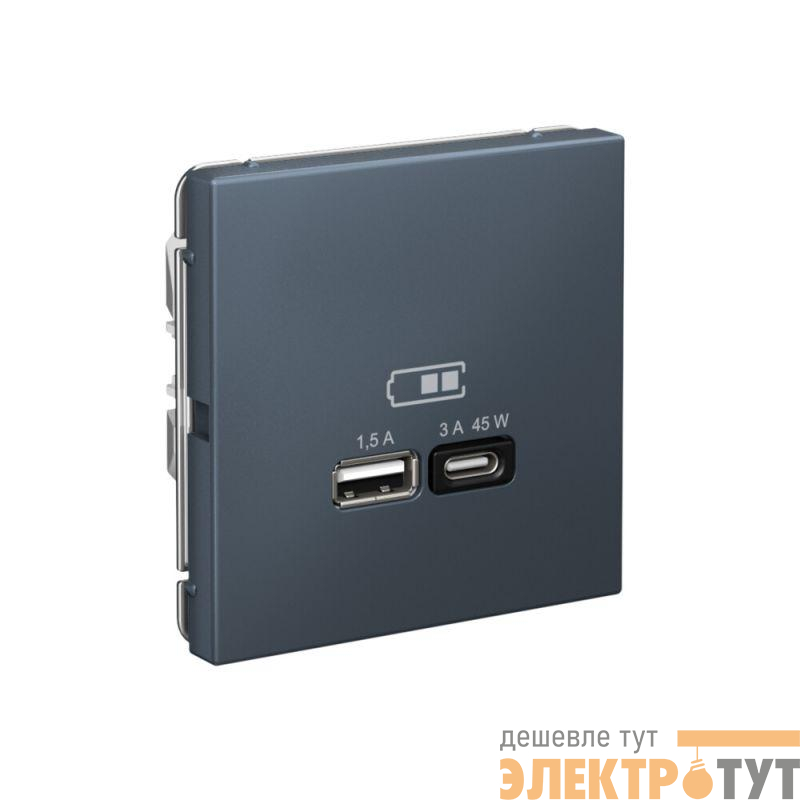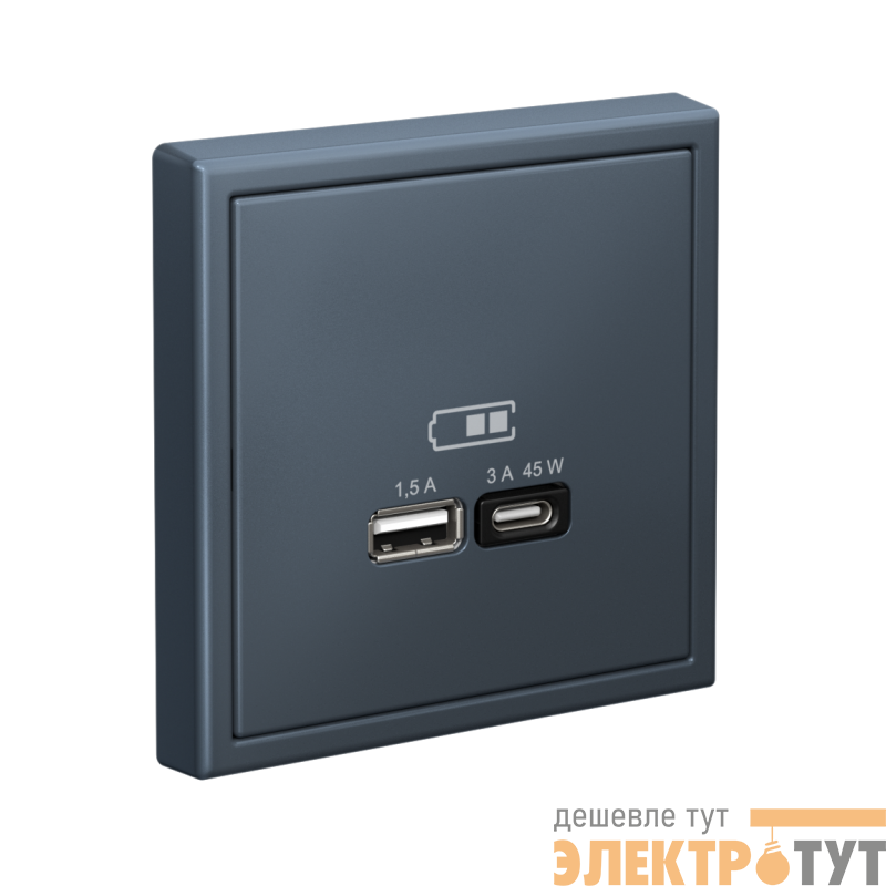 Розетка Systeme Electric серии ArtGallery в цвете грифель двойная USB с разъемами типа A+C высокоскоростная.