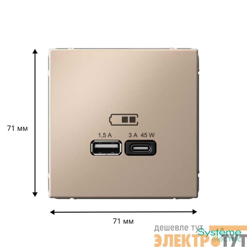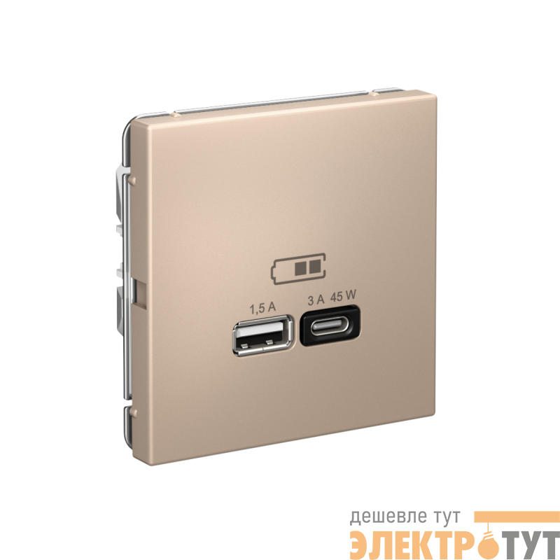 Розетка Systeme Electric серии ArtGallery в цвете песочный двойная USB с разъемами типа A+C высокоскоростная.