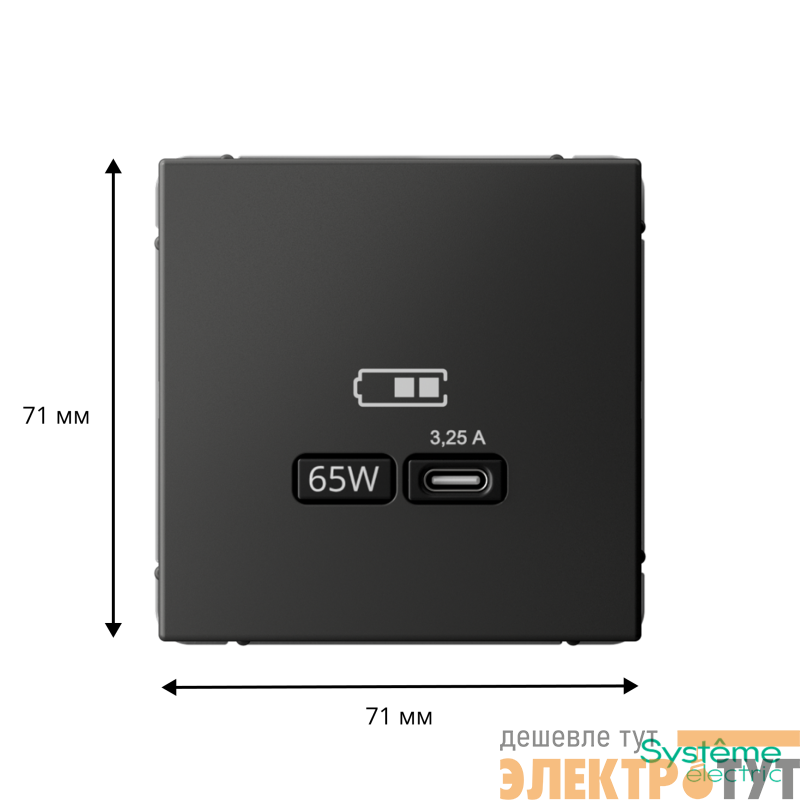 GAL001427 | Розетка USB ArtGallery тип C 65Вт QC PD высокоскор. ЗУ механизм базальт SE