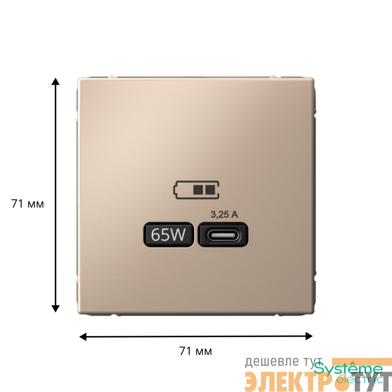 Розетка Systeme Electric серии ArtGallery в цвете песочный USB с разъемом типа C высокоскоростная.
