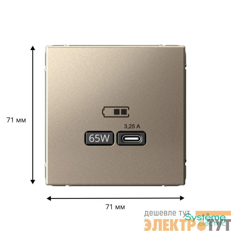 GAL000527 | Розетка USB ArtGallery тип C 65Вт QC PD высокоскор. ЗУ механизм шампань SE