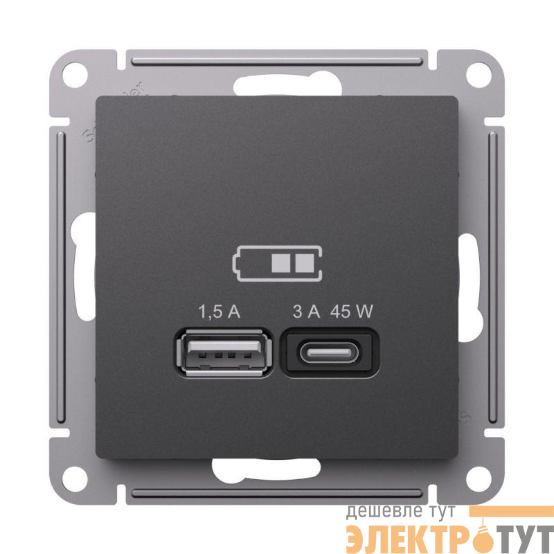 ATN001429 | Розетка USB AtlasDesign тип A+C 45Вт высокоскор. ЗУ QC PD механизм базальт SE
