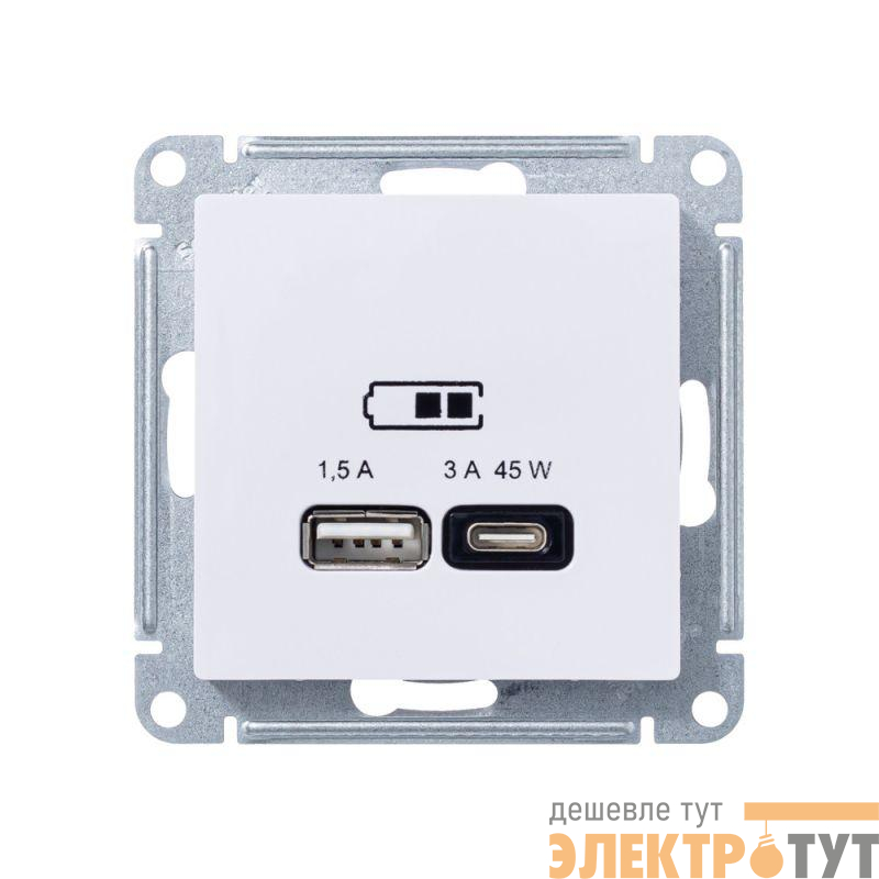 ATN001329 | Розетка USB AtlasDesign тип A+C 45Вт высокоскор. ЗУ QC PD механизм лотос SE