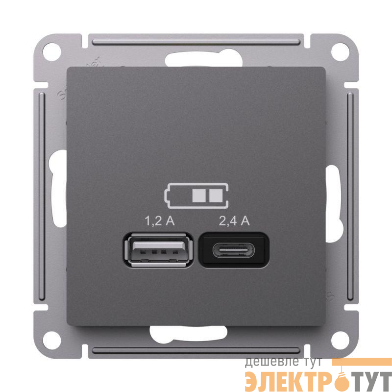 ATN001439 | Розетка USB AtlasDesign тип A+C 5В/2.4А 2х5В/1.2А механизм базальт SE