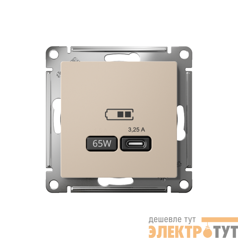 ATN001227 | Розетка USB AtlasDesign тип C 65Вт высокоскор. ЗУ QC PD механизм песочн. SE