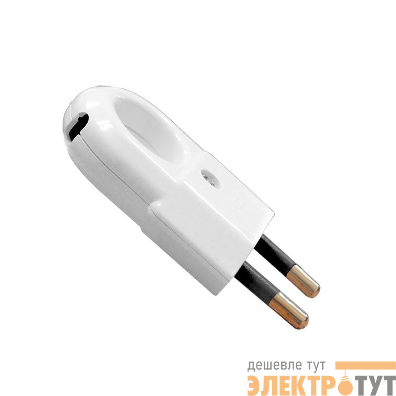 А103 | Вилка электрическая 6А 250В плоская с ушком без. заземл. бел. (еврослот) UNIVersal