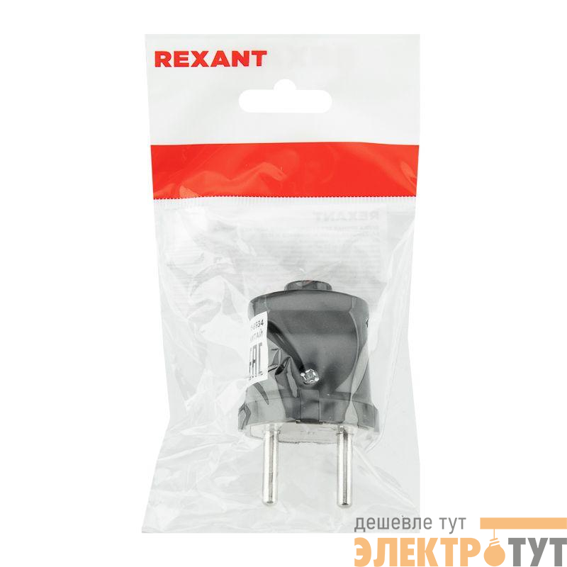 11-8934 | Вилка прямая 6А без заземл. черн. Rexant