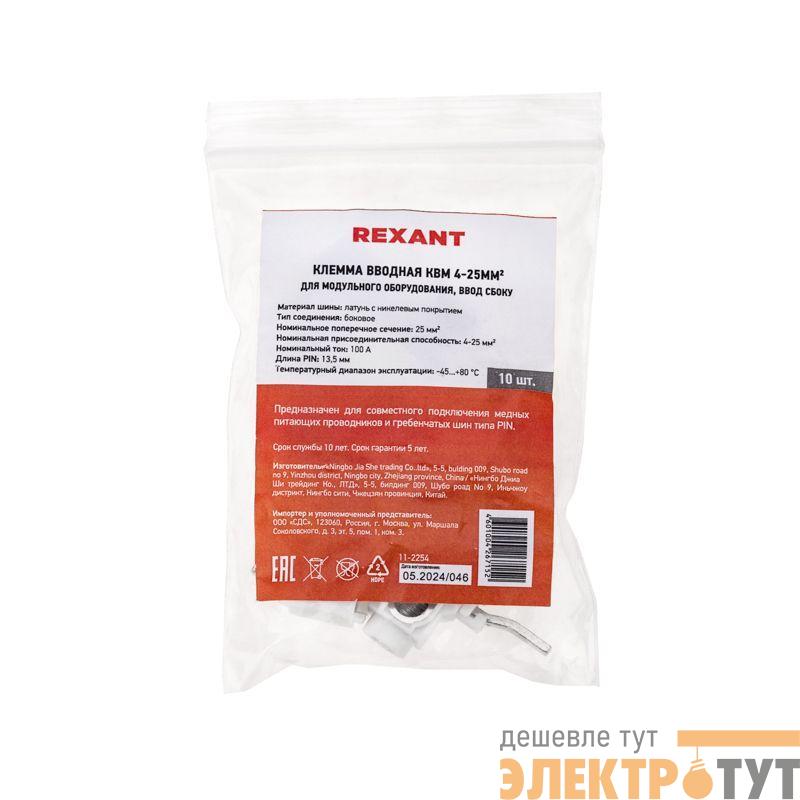 11-2254 | Клемма вводная КВМ 4-25кв.мм для модульного оборудования ввод сбоку Rexant