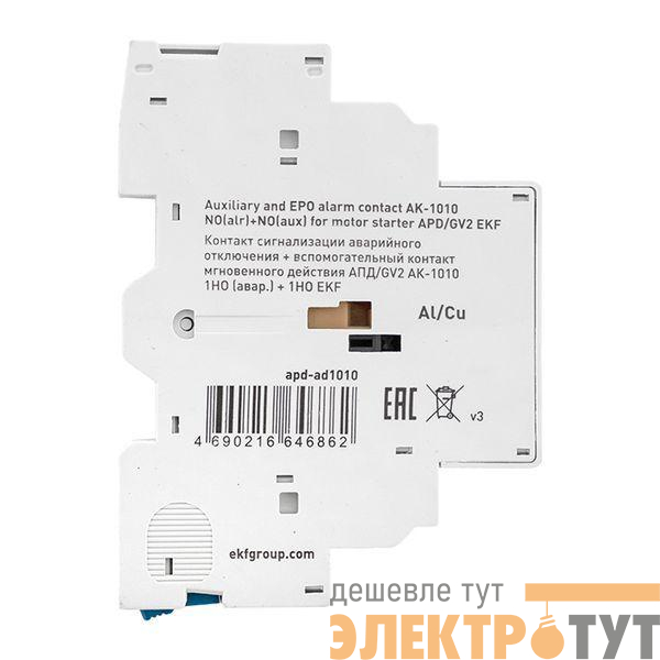 apd-ad1010 | Контакт сигнализации аварийного отключения + вспомогательный контакт мгновенного действия АПД/GV2 АК-1010 1НО (авар.) + 1НО EKF