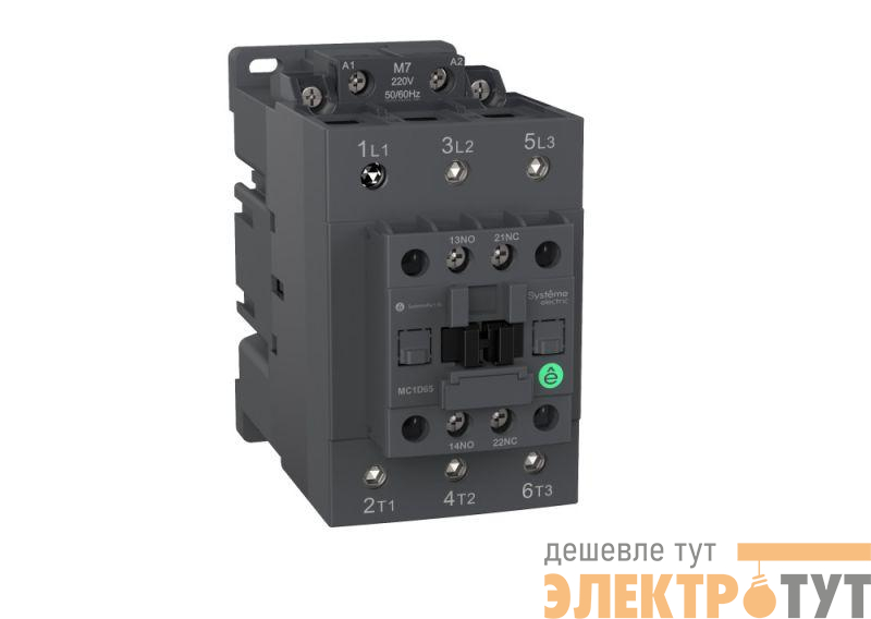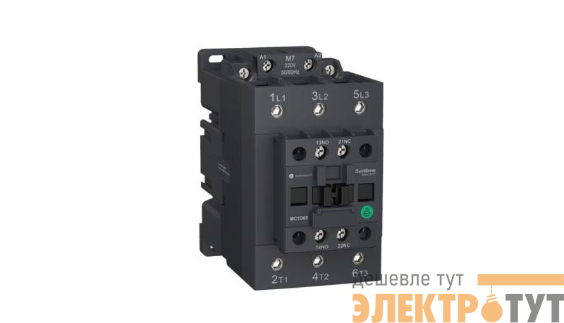 Контактор серии SystemePact MC1D на номинальный ток 50 А, 3P, 1НО+1НЗ; напряжение управления – 24 В пер./пост. тока; крепеж – на DIN-рейке или монтажной плате. Контакторы серии SystemePact MC1D разработаны для управления двигателями различных типов, а также насосами, лифтов и системами вентиляции. Они имеют увеличенный электрический и механический ресурс; могут оснащаться дополнительными контактами, тепловыми реле, механическими блокировками, ограничителями перенапряжений.