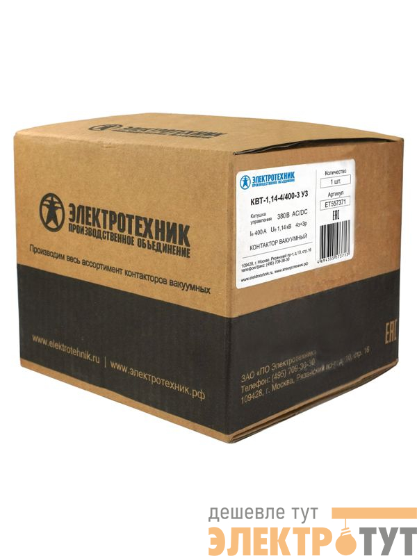 ET557371 | Контактор вакуумный КВТ-1.14-4/400-3 У3 3п 400А кат. 380В 4НО+3НЗ IP00 без реле Электротехник