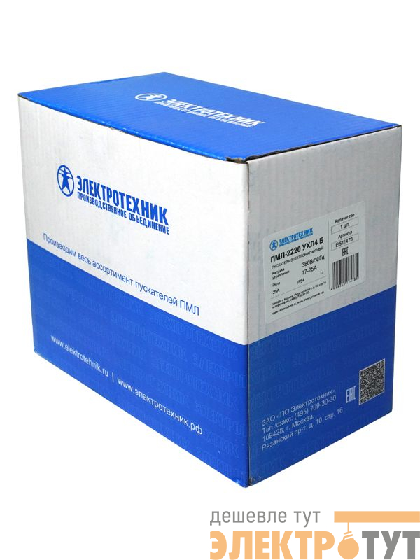 ET511478 | Пускатель электромагнитный ПМЛ-2220 УХЛ4 Б 25А 380В/50Гц AC 1НО IP54 нереверсивный с реле РТЛ-1022-2 17-25А Электротехник