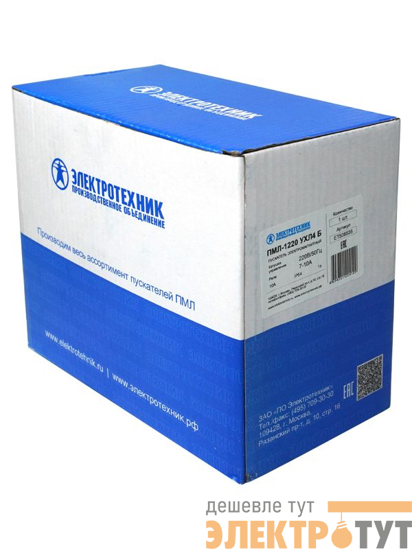 ET508535 | Пускатель ПМЛ-1220 УХЛ4 Б 10А кат. 220В 1НО IP54 с реле 7-10А в корпусе с кнопками ПУСК + СТОП Электротехник