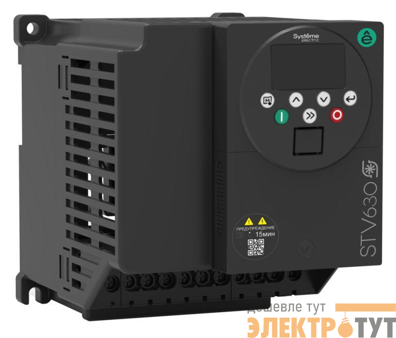 Преобразователь частоты SystemeVar STV630 для насосных и вентиляторных применений. Номинальные характеристики: Un = 1Ф 220В; Pn = 2,2 кВт; In = 9 А. LED панель оператора. Без встроенного DC-реактора. Встроенный ЭМС фильтр класса С3. Встроенный Modbus RTU. Кол-во входов/выходов: 5DI, 1AI, 1DO, 1RO, 1AO. Степень защиты IP20. Без слота для карты расширения. Без встроенного светодиода состояния. Покрытие плат класса 3С3. Типоразмер A2. ШxВxГ (мм): 109х129х148. Вес: 0,96 кг.