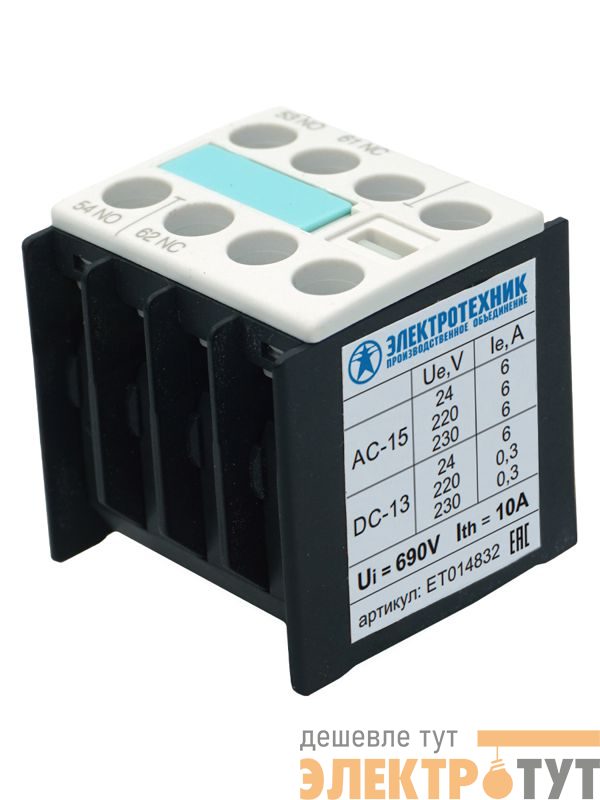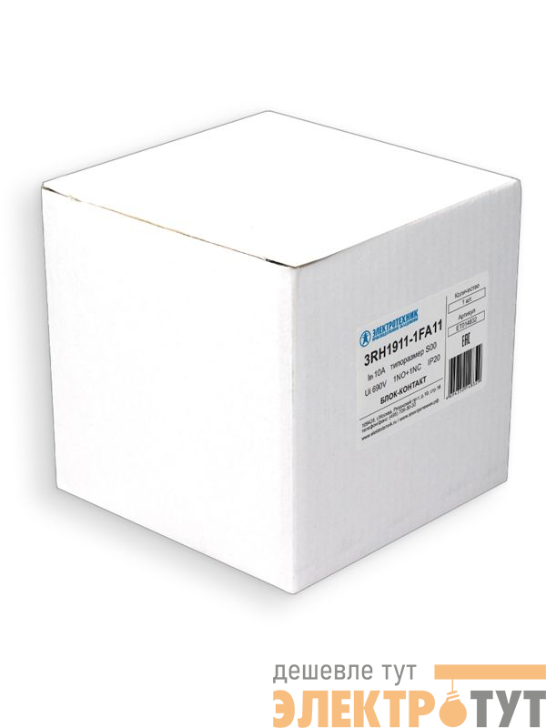 ET014832 | Блок-контакт 3RH1911-1FA11 1НО+1НЗ для контакторов типоразмера S00 фронтальный винт. клеммы IP20 Электротехник