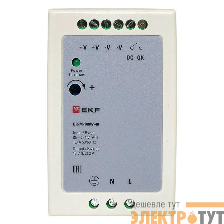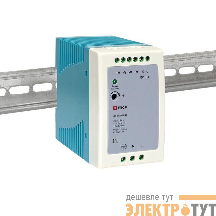 DR-M-100W-48 | Блок питания на DIN-рейку 100Вт Uвх ~ 220В AC m Uвых - 48В DC постоянного тока EKF