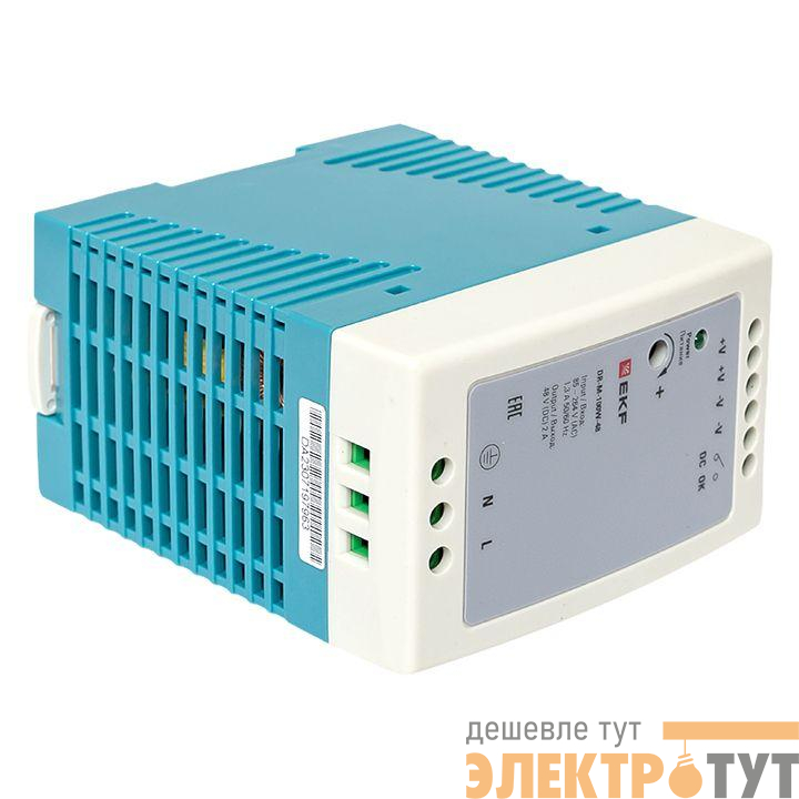 Блоки питания серии DR напряжениями 5/12/24/48 В, EKF устанавливаются на DIN рейку и предназначены для преобразования входного переменного напряжения 100-240 В в постоянное стабилизированное напряжение 5,12,24 или 48 Вольт.