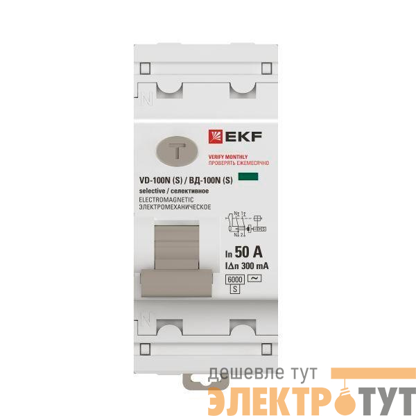 E1026MS50300 | Выключатель дифференциального тока 2п 50А 300мА тип AC 6кА ВД-100N (S) электромех. PROxima EKF