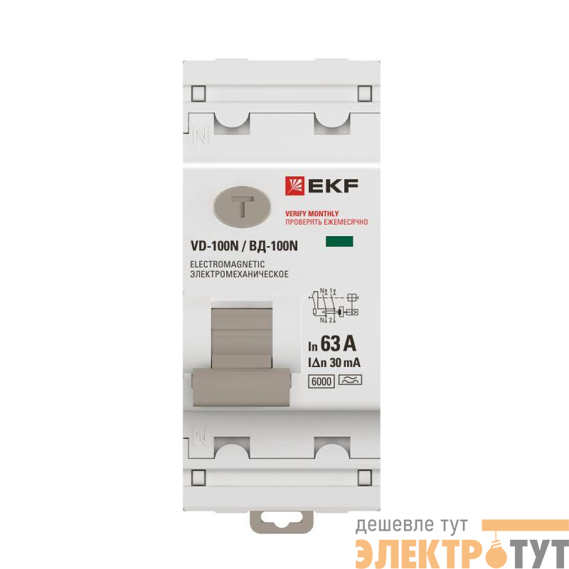 E1026MA6330 | Выключатель дифференциального тока 2п 63А 30мА тип A 6кА ВД-100N электромех. PROxima EKF