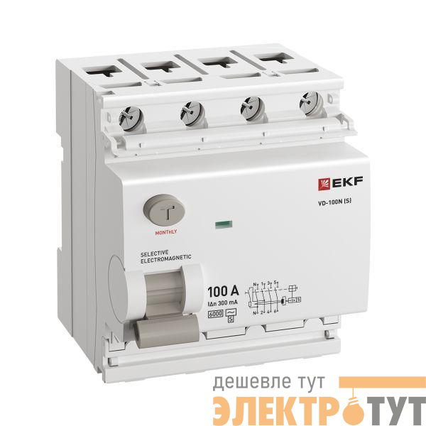 E1046MS100300 | Выключатель дифференциального тока 4п 100А 300мА тип AC 6кА ВД-100N (S) электромех. PROxima EKF