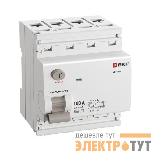 E1046M10030 | Выключатель дифференциального тока 4п 100А 30мА тип AC 6кА ВД-100N электромех. PROxima EKF