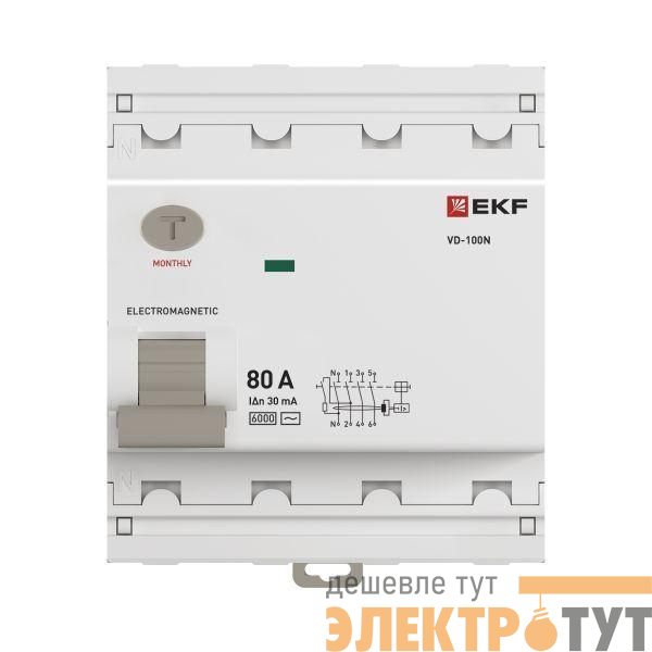 E1046M8030 | Выключатель дифференциального тока 4п 80А 30мА тип AC 6кА ВД-100N электромех. PROxima EKF