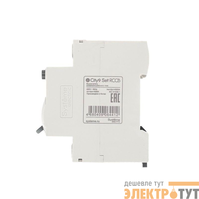 Выключатель дифференциального тока (ВДТ) или устройство защитного отключения (УЗО) серии City9 Set Systeme Electric, селективный, 4-полюсный, номинальный ток 63А, ток утечки 100 мА, тип А, электромеханический. Применяется в электрических сетях напряжением 400В. ВДТ типа S устанавливается на вводе и служит для обеспечения полной селективности благодаря задержке срабатывания. Кнопка тест обеспечивает проверку работоспособности аппарата. Крепление на DIN-рейку шириной 35 мм. Подключение сверху и снизу. Безопасные клеммы с защитой от неправильного подключения.