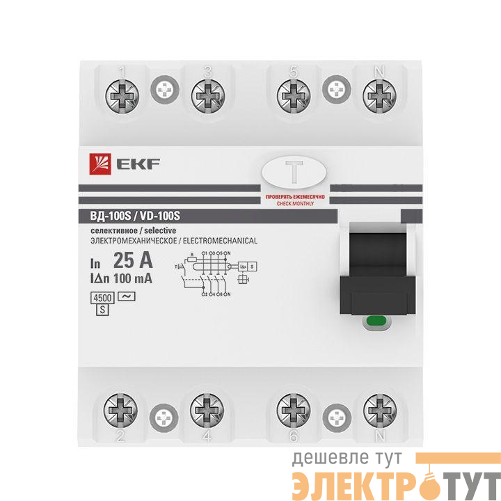 elcb-4-25-100S-em-pro | Выключатель дифференциального тока (УЗО) 4P 25А 100мА (электромех.) PROxima EKF
