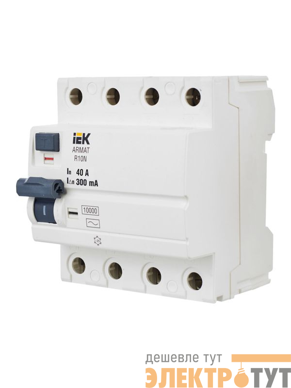 | Выключатель дифференциального тока (УЗО) 4п 40А 300мА тип A ВДТ R10N ARMAT IEK AR-R10N-4-040A300