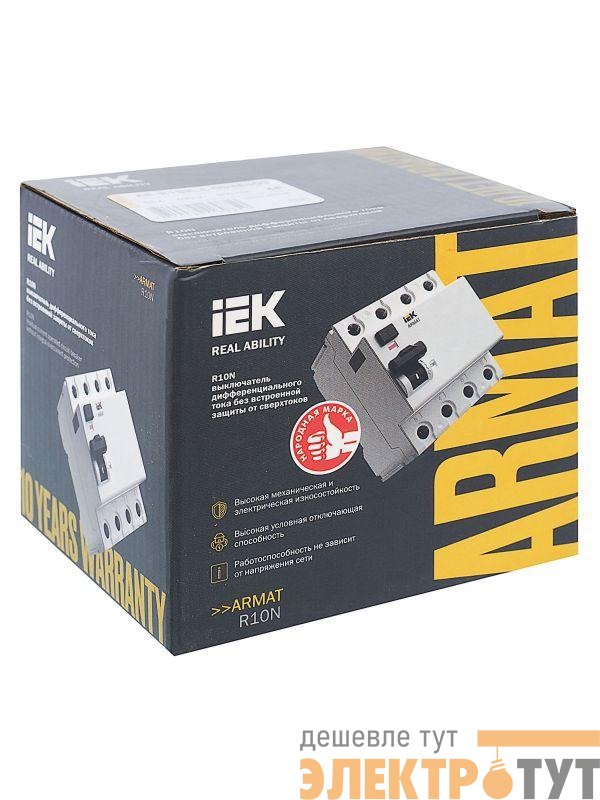 AR-R10N-4-040C300 | Выключатель дифференциального тока (УЗО) 4п 40А 300мА тип AC ВДТ R10N ARMAT IEK
