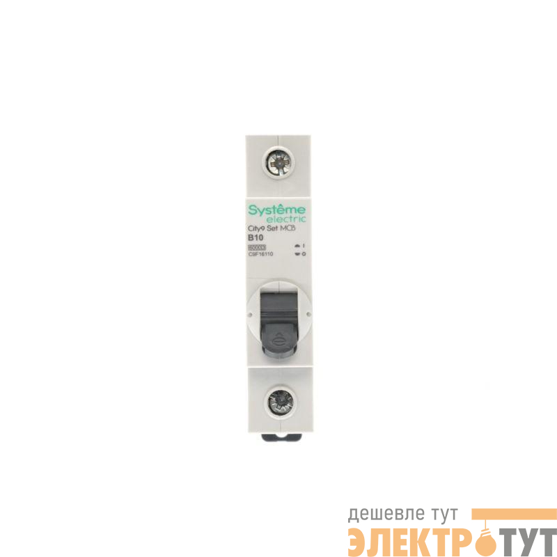 Автоматический выключатель серии City9 Set Systeme Electric, 1-полюсный, номинальный ток 10 А, характеристика B, Icn = 6 кА. Применяется в электрических сетях напряжением 230 В. Предназначен для защиты от перегрузок и токов короткого замыкания. Оснащен механизмом «мгновенной коммутации». Ударопрочный корпус из специального пластика с 6 металлическими заклепками. Безопасные клеммы исключают попадание кабелей в заклеммное пространство (ранее Schneider Electric R9F02110).