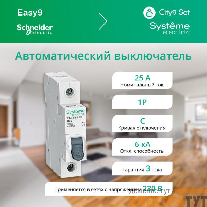 C9F36125 | Выключатель автоматический 1п City9 Set (АВ) C 25А 6кА 230В SE