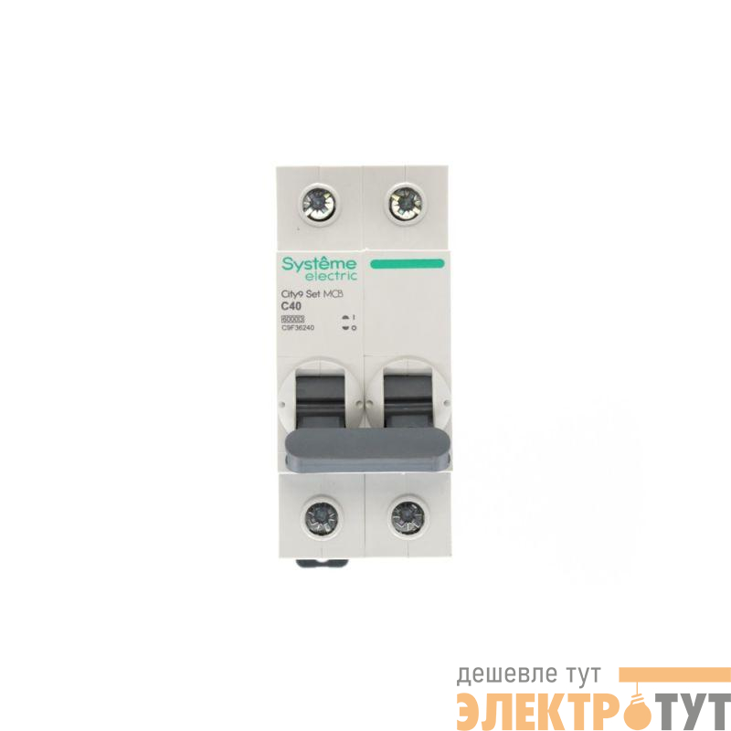 Автоматический выключатель серии City9 Set Systeme Electric, 2-полюсный, номинальный ток 40 А, характеристика С, Icn = 6 кА. Применяется в электрических сетях напряжением 230 В. Предназначен для защиты от перегрузок и токов короткого замыкания. Оснащен механизмом «мгновенной коммутации». Ударопрочный корпус из специального пластика с 6 металлическими заклепками. Безопасные клеммы исключают попадание кабелей в заклеммное пространство (ранее Schneider Electric A9K24240, R9F12240).
