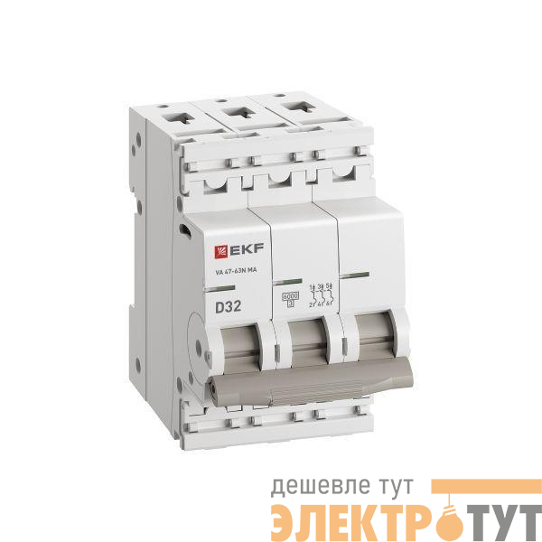 M63MA6332D | Выключатель автоматический 3п D 32А 6кА ВА 47-63N MA без теплового расцеп. PROxima EKF